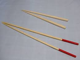 Os pauzinhos são usualmente feitos de madeira, bambu, marfim ou metal, e modernamente de plástico. O par de pauzinhos é manuseado com a mão direita, entre o dedo polegar e os dedos anelar, médio e indicador, e serve para apanhar pedaços de comida ou empurrá-los diretamente da tigela para a boca.).